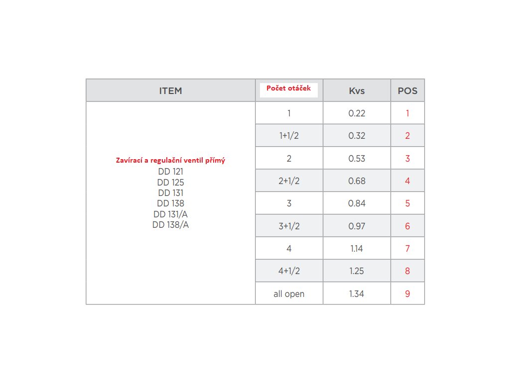 Nastavení průtoku ventilu. Odšroubujte plastovou krytku závitu ventilu. Pomocí šestihranného imbusového klíče 6 (nebo 10) nastavte požadovaný průtok. Otevřete (uzavřete) ventil o tolik otáček, kolik je uvedeno v tabulce níže. Po nastavení průtoku našroubujte plastovou krytku zpět na závit ventilu a bez použití nadměrné sily krytku dotáhněte.