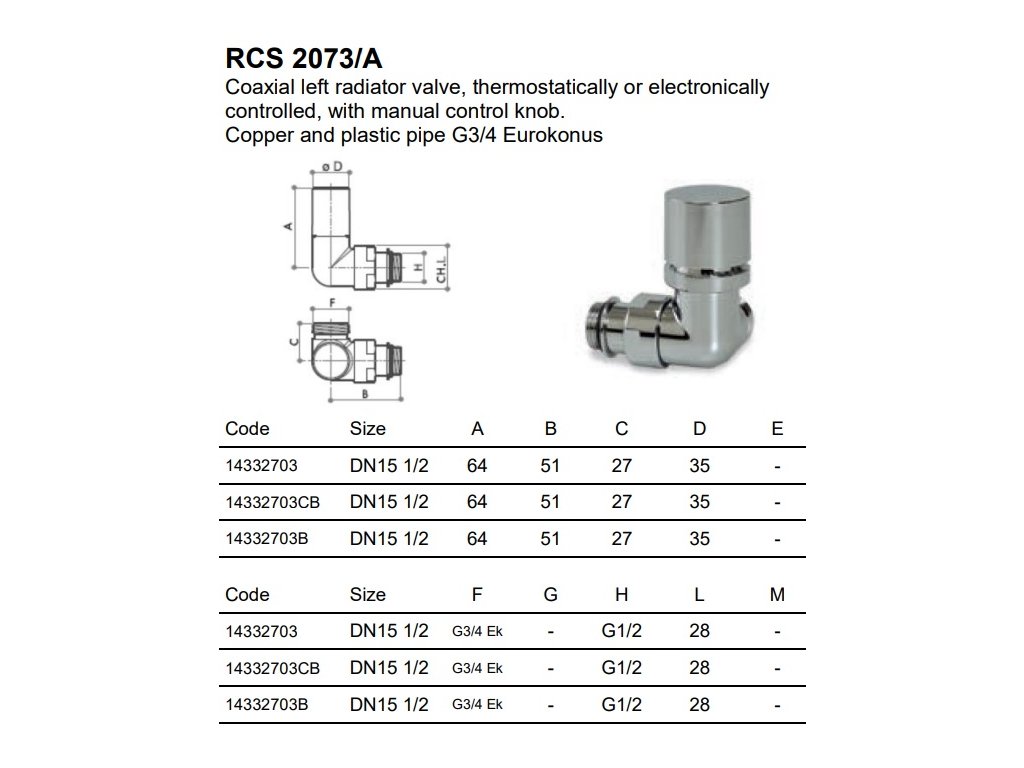 LUXOR KT2073/A set termostatický ventil a regulační šroubení 1/2"x3/4"EK rohový úhlový levý chrom