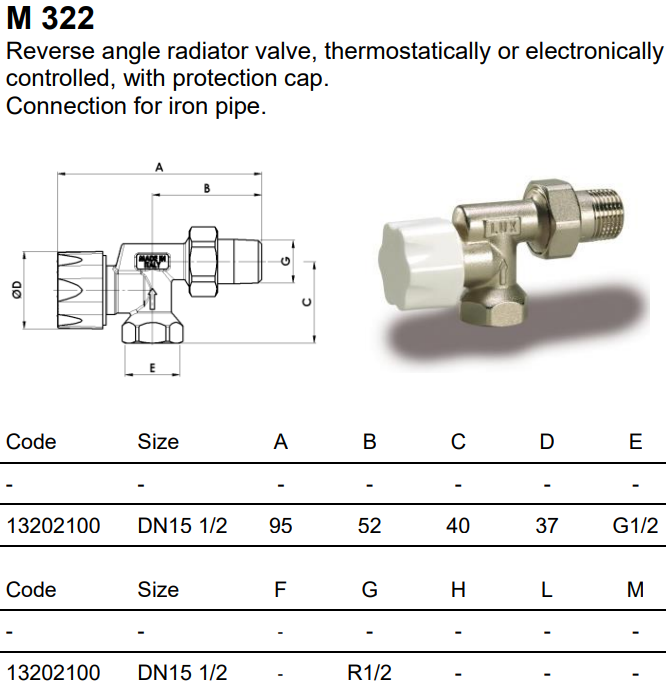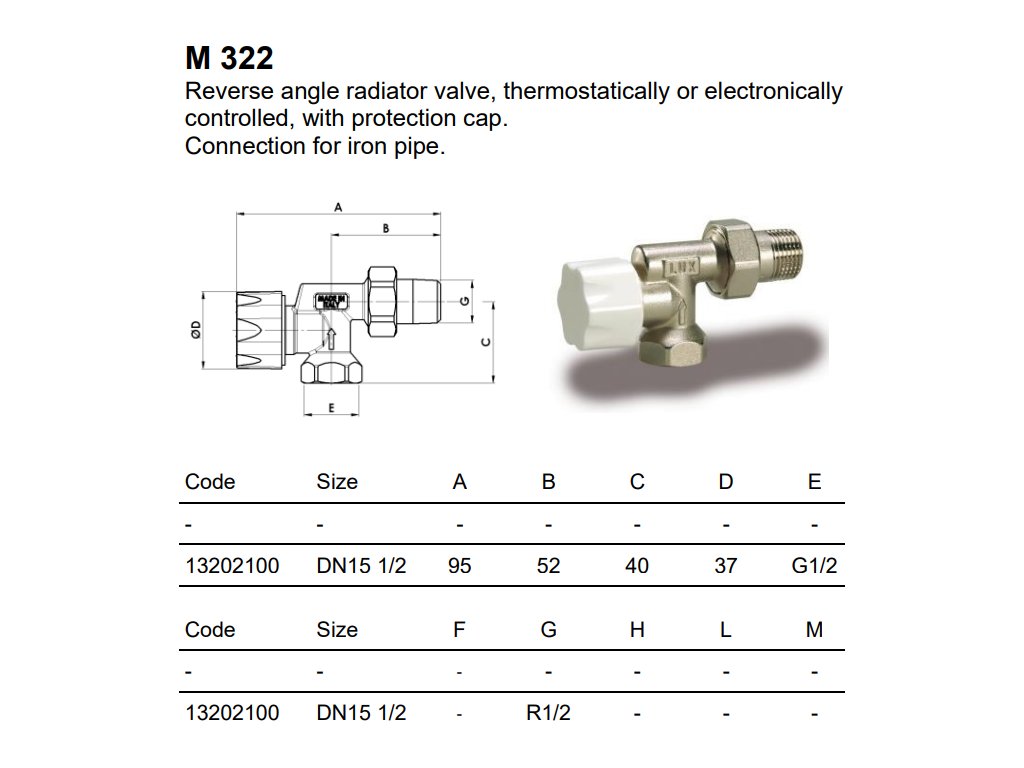 LUXOR M 322 termostatický radiátorový ventil 1/2" reverzní boční