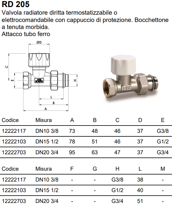 LUXOR RD 205 termostatický radiátorový ventil s přednastavením přímý
