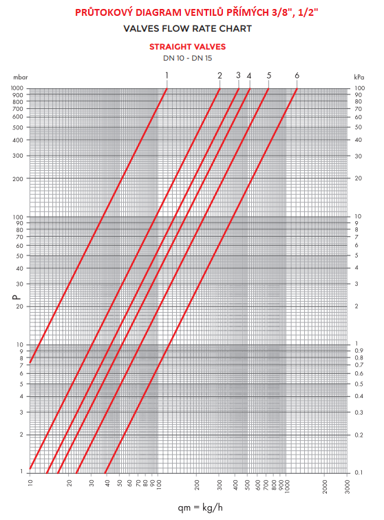Chcete-li nastavit maximální průtok termostatického ventilu, zarovnejte referenční značku na tyčince s pozicí 6 na těle ventilu. Aby nedocházelo k nadměrné hlučnosti systému, nepoužívejte termostatické ventily s hodnotou ∆P vyšší než 0,2-0,25 bar. Před spuštěním systému zkontrolujte, zda je volič průtoku správně umístěn v poloze 6.