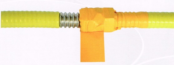 Oblasti, kde byl odstraněn ochranný plášť (aby bylo možné provést spojení mezi potrubím a spoji), musí být opět přelepeny žlutou ochrannou páskou NY38G. Tloušťka nanesené pásky nesmí být menší než 0,5 mm a slouží k ochraně systému před mechanickým poškozením, korozí a bludnými proudy.