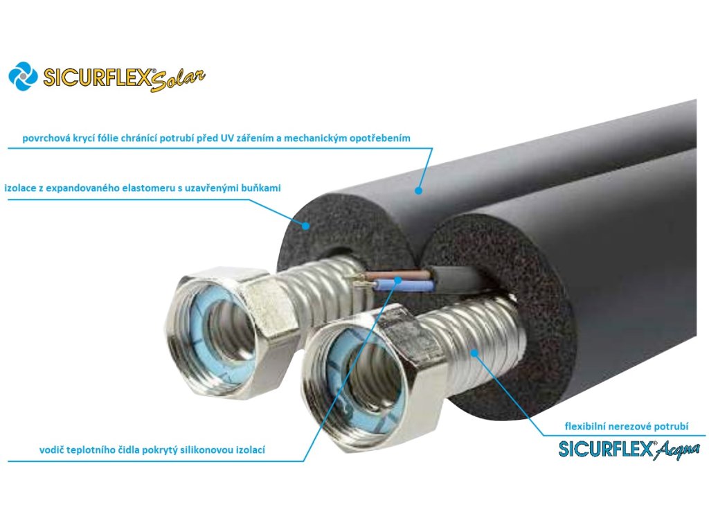 - ohebné, izolované potrubí z nerezové oceli pro připojení k solárním topným systémům