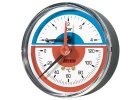 Teploměr příložný s pružinovou objímkou. Průměr 63 mm. Rozsah 0-120 °C. Sklíčko Kostil. Pouzdro ocel černý smalt. Upevňovací kroužek měď. Upevňovací pružina ocel pozinkovaná. Snímací prvek bimetalová spirálová pružina. Přesnost Cl. 2. Krytí...