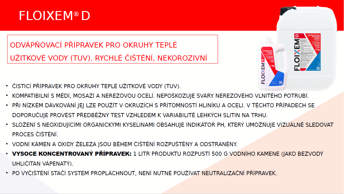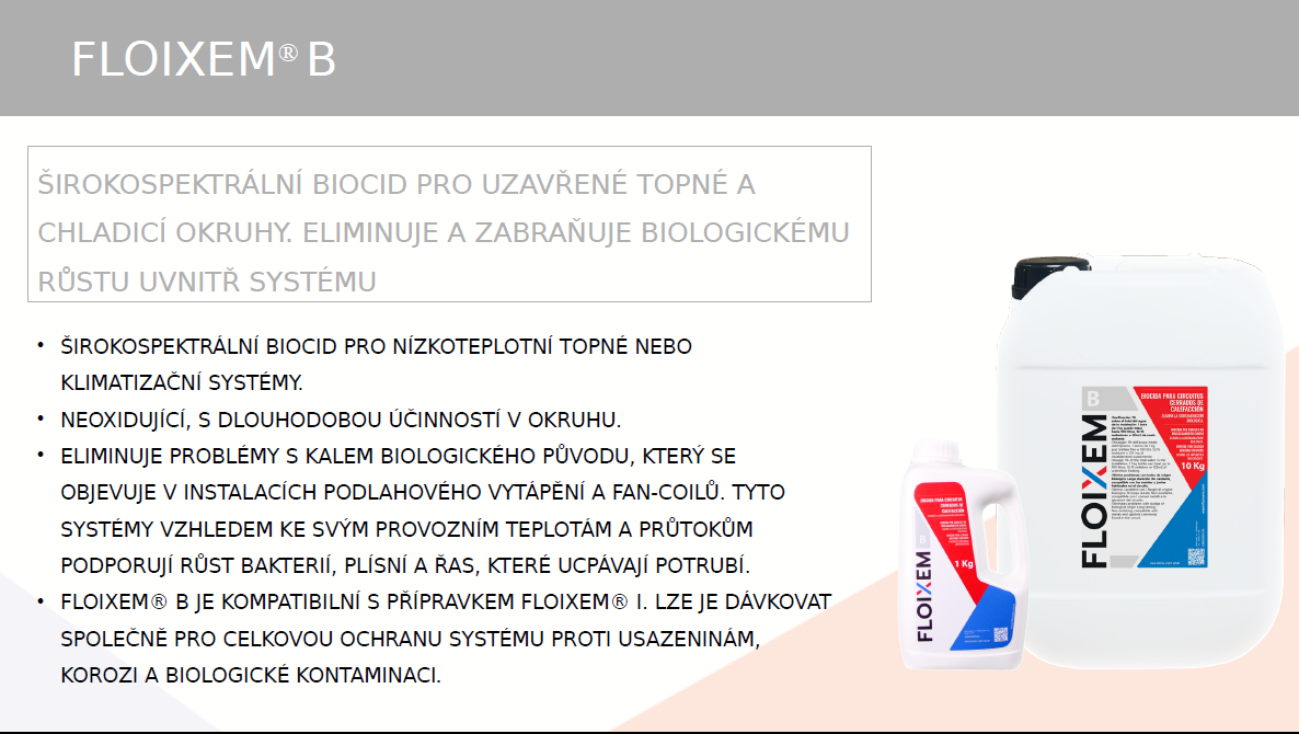Floixem® je moderní evropská značka specializující se na vývoj a výrobu chemických přípravků pro úpravu vody, ochranu systémů a přenos tepla. Zaměřuje se na HVAC, energetiku a průmyslové aplikace, kde produkty zvyšují výkon, účinnost a životnost zařízení.