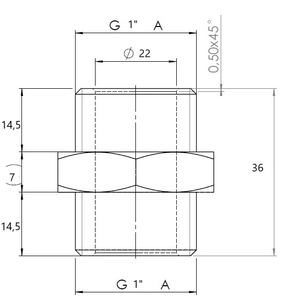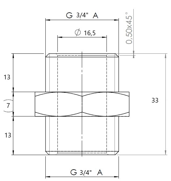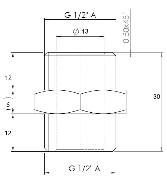 Mosazná vsuvka silnostěnná. Připojení 1/2", 3/4", 1". Provozní teplota 0 °C +100 °C. Provozní tlak PN 10. Mosaz CW617N.. Pro rozvody vody a topení. Vsuvka je vyrobena podle našich zadávacích parametrů a výkresu na Slovensku.