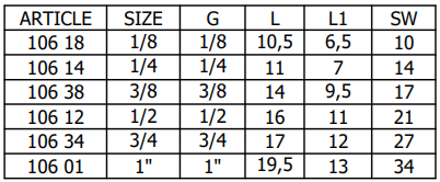 Připojení: 1/8", 1/4", 3/8", 1/2", 3/4", 1", 5/4", 6/4", 2"