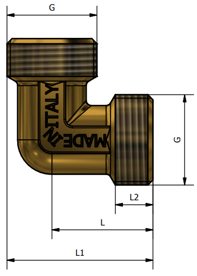 Mosazné koleno. Vnější závit. Připojení 3/8", 1/2", 3/4", 1". Provozní teplota 0 °C +120 °C. Provozní tlak PN 16. Mosaz CW617N. Pro rozvody vody a topení. Vyrobeno v souladu s UNI EN ISO 9001:2015 v Itálii.