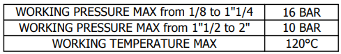 - provozní tlak pro 1/4"-5/4" 16 bar