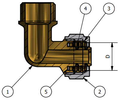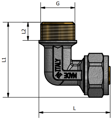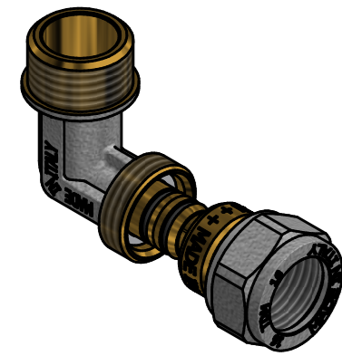 Mosazné svěrné koleno pro pex-al-pex potrubí. Vnější závit.  Připojení 1/2"x16, 1/2"x20. Pro dopojení potrubí. Provozní teplota 0 °C +110 °C. Provozní tlak PN 10. Mosaz CW617N. Těsnící O-kroužek EPDM. Pro rozvody vody a topení. Použité těsnění splňuje normu UNI EN 681-1: 2006 (pro vodu). Vyrobeno v souladu s UNI EN ISO 9001:2015 v Itálii.