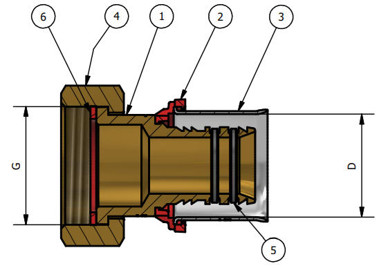 TDM BRASS PEX 1626 přechod press s maticí a plochým těsněním