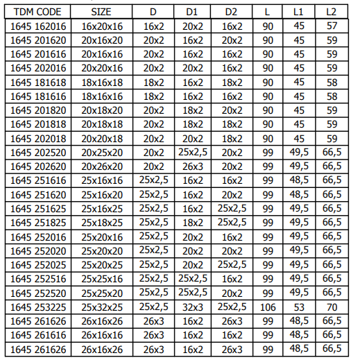 - připojení 16x20x16, 18x16x16, 18x16x18, 20x16x16, 20x16x20, 20x18x18, 20x18x20, 20x20x16, 20x26x20, 26x16x20, 26x16x26, 26x18x26, 26x20x20, 26x20x26, 26x26x16, 26x26x20, 32x20x32, 32x26x26, 32x32x26, 40x32x40