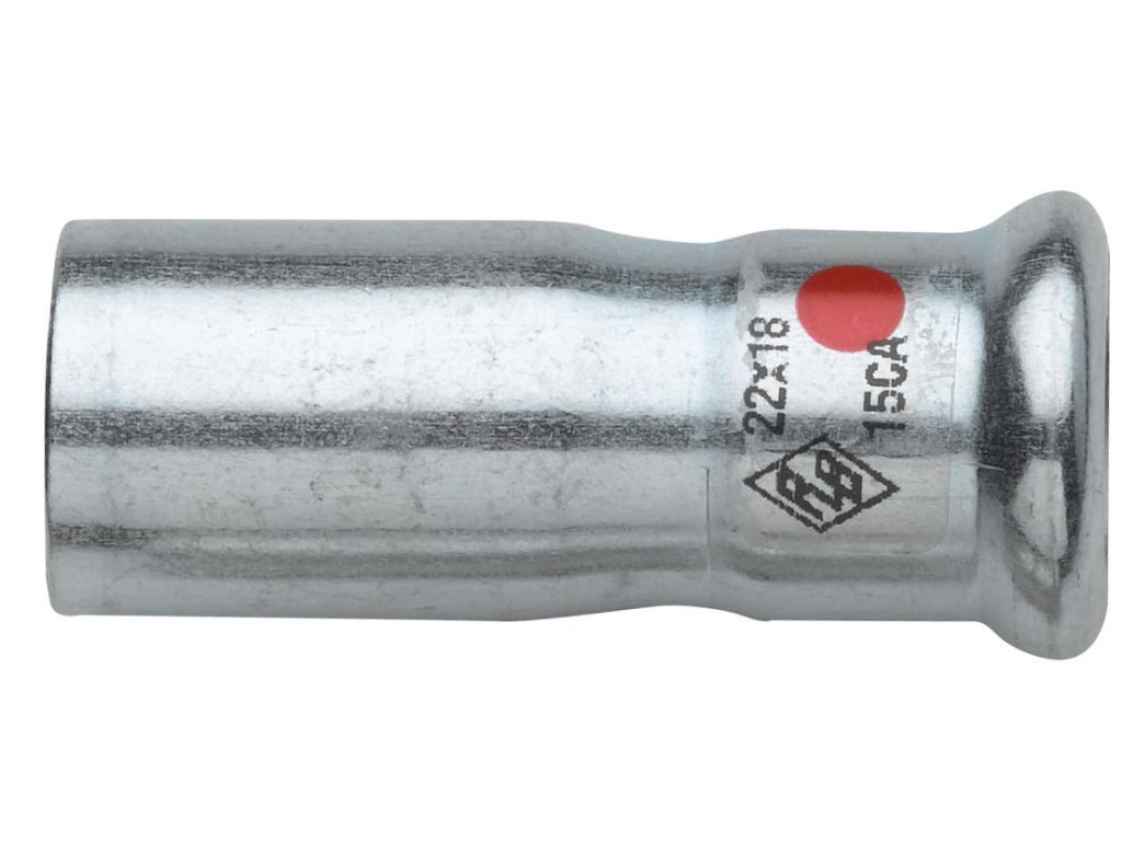 4) trubku zasuňte do tvarovky až na dno a přitom ji mírně otáčejte. Spoj si označte fixou, abyste mohli kontrolovat případné posunutí spoje před zalisováním nebo během lisování