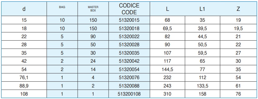 • připojení 15, 18, 22, 28, 35, 42, 54, 76,1, 88,9, 108