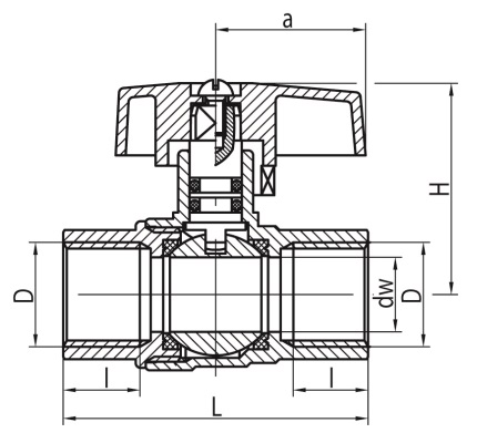 Nasaďte vidlicový klíč na šestihranný (nebo osmihranný) konec ventilu na straně potrubí (pod páčkou, při poloze otevřeno) a našroubujte ventil na přívodní potrubí. Nepoužívejte klíč na opačný konec ventilu, abyste jej našroubovali na potrubí (ne závitový spoj, je vidět na řezu níže). Podobný postup použijte při demontáži ventilu. Použití jiných než výše uvedených metod může způsobit poškození nebo netěsnost ventilu. Na utěsnění závitů použijte těsnící materiál podle doporučených plynárenských předpisů (těsnící pasta +instalatérský len).