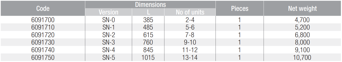 - rozměr 110 x 385 x 580 mm, 110 x 485 x 580 mm, 110 x 615 x 580 mm, 110 x 760 x 580 mm, 110 x 845 x 580 mm, 110 x 1015 x 580 mm