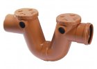 Sifon proti zápachu, s čistícími otvory a ventilačním systémem pro připojení otevřených (dešťových) vpustí a kanálů se splaškovou kanalizací podle norem EN1329 a EN1401. Připojení DN 110, DN 125, DN 160, DN 200. Provozní teplota -10 °C + 80 °C....
